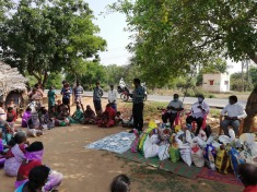 Evangelisering blandt hindu folk og uddeling af mad.